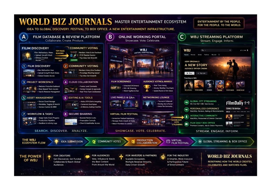 World Biz Journals (WBJ) is redefining the entertainment industry with a fully integrated platform combining film database, participative production, cloud collaboration, virtual film festivals, and OTT streaming. Discover how WBJ is shaping the future of global storytelling.